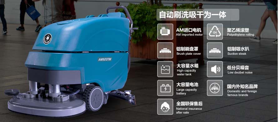 潔士AM880TM手推自走式洗地機產品性能特點:1. 獨家三道安全防護設計:(1);第一道防線(獨立接觸器設計):刷盤電機、吸水電機、驅動電機采用三個分離式繼電器設計,大大降低設備的故障率及后期替換成本,達到更好的獨立保護目的;(2);第二*